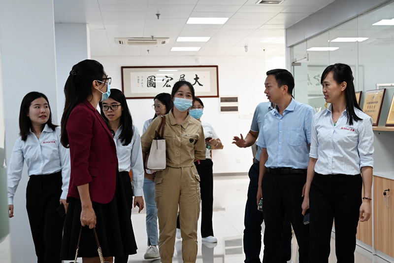 10月12日上午,廣東嶺南職業技術學院健康學院院長辛增輝一行五人蒞臨吉星進行參觀交流,吉星研究院秘書長莊小丹等熱情歡迎辛院長一行的到來,并陪同校領導一行參觀了公司辦公環境和教學展區。