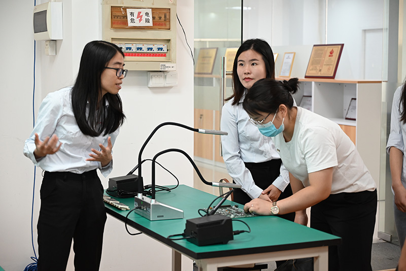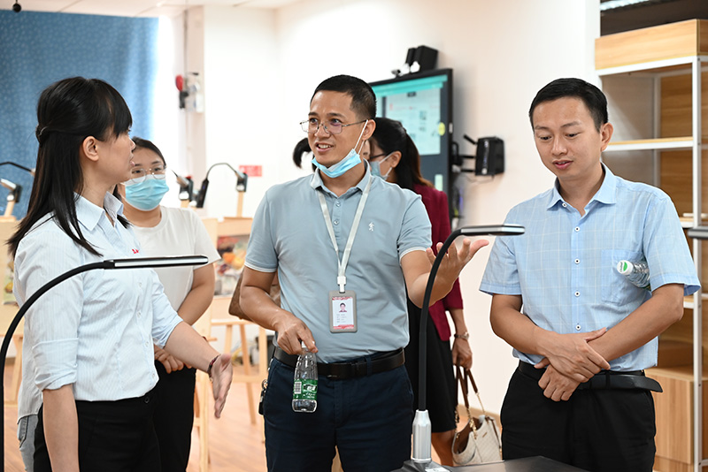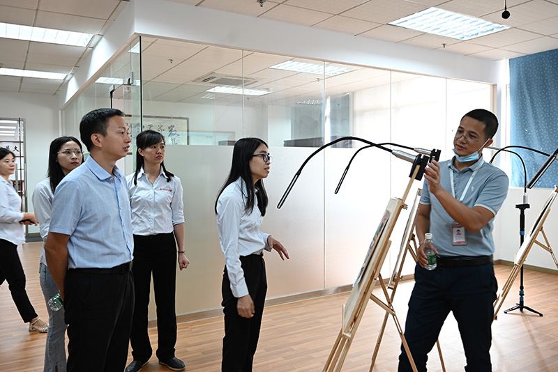 隨后,廣東嶺南職業技術學院一行領導前往了教學展區參觀,觀看了吉星無線全錄播系統在不同教學場景下的運行情況。